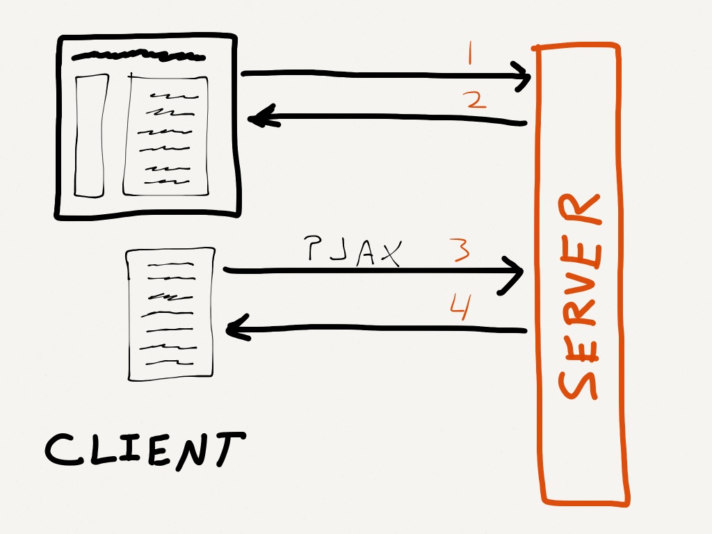 You can understand PJAX in terms of two page requests. The first time a user requests a page, it's served just like any other "traditional" Rails page. But when the user clicks on a PJAX-enabled link, something special happens. Instead of completely reloading the page, only a portion of the page is updated. It's done via AJAX.
