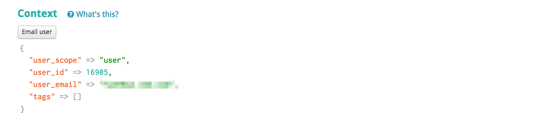 Honeybadger.context(user_id: user.id, user_email: user.email, user.scope: "user")