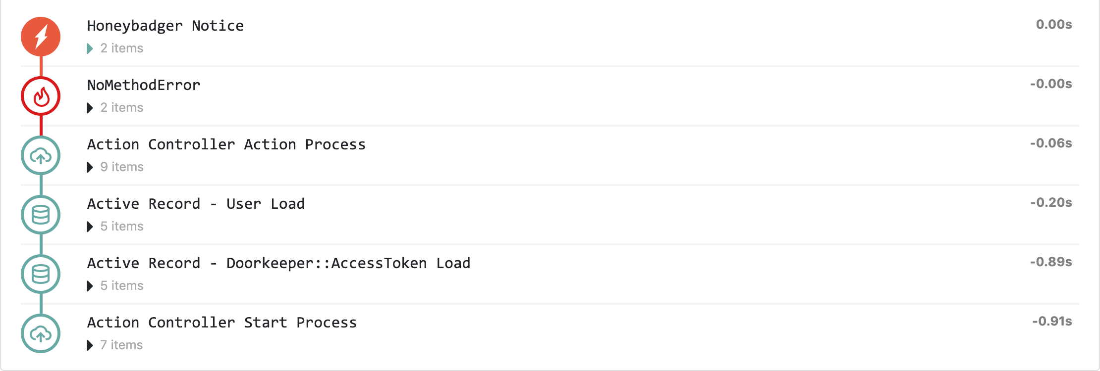The Honeybadger Ruby library contains hooks into Ruby & Rails to automatically collect breadcrumbs. For example, all log messages emitted in Production (sent through the Logger class) are captured and created as breadcrumbs. We also tie into Rails Instrumentation to gather breadcrumbs for Controller Actions, SQL Queries, Active Job invocations, etc...