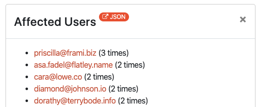 We also added a link in the Affected Users modal (see screenshot above) that takes you directly to our API with a JSON payload containing all Affected Users. The search query is persisted so you can save this and use it outside of Honeybadger if you want.