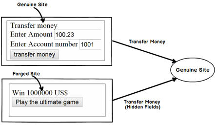 A CSRF attack. Image from http://www.codeproject.com/KB/aspnet/556995/csrf3.jpg