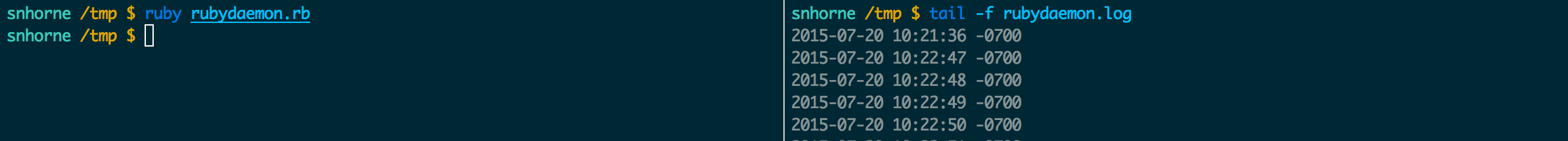 Now that you've been told to never make a daemon, let's make some daemons! As of Ruby 1.9, this is incredibly simple. All you have to do is use the Process.daemon method.
