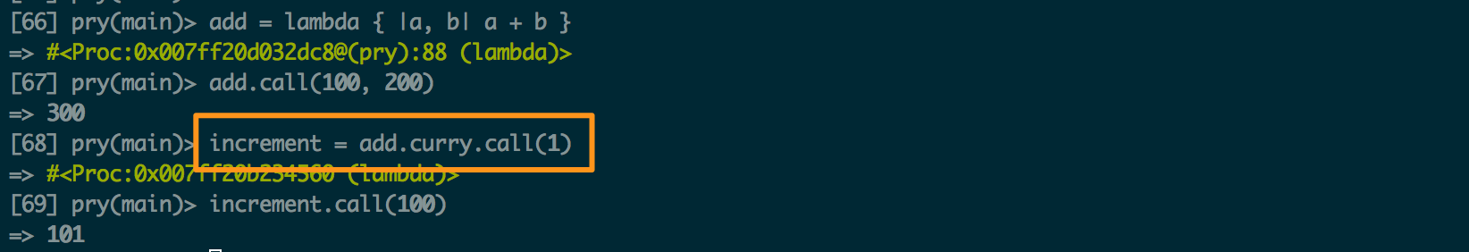 In the code below I have a lambda function that adds two numbers. Conveniently, it's called add. Then I use currying to create a more specialized function called increment. It simply adds one to any given number.